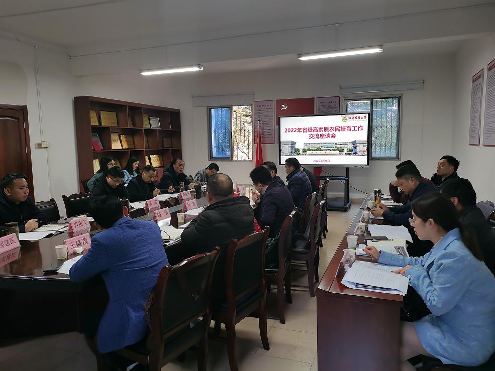 2月28日,2022年省级高素质农民培育工作交流座谈会在江西农业大学召开。省农业农村厅科教处刘凯副处长、省农技推广中心科宣处潘华处长、江西日报社财经部钟金平副主任出席会议。江西农业大学继续教育学院、江西省农科院基地管理中心、华亿平台、江西农业工程职业学院、江西省通用技术工程学校、江西凤凰沟生态发展有限公司等六家省级培训基地,培训工作分管领导及培训工作负责同志参加座谈会。