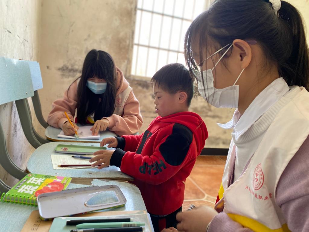 在孩子们上课时间,志愿者们对校园环境卫生进行卫生清洁。随后,带领着孩子们进行了写字练习和绘画。看着笔墨在孩童们手上飞扬,望着颜料在画纸上绽放,勾勒出属于他们的春天!在欢笑之中,时间却已在指中逃走,本次活动也渐入尾声。在简单的合影后,迈上了返程的归途。