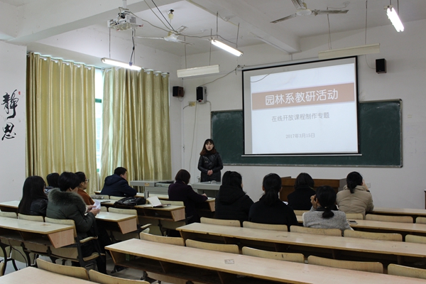 为了提升系部教师教学质量,315日下午,园林系组织开展教研活动,邀请智慧树公司专家来系部为教师进行在线开放课程制作专题讲座,全体教师准时参加。